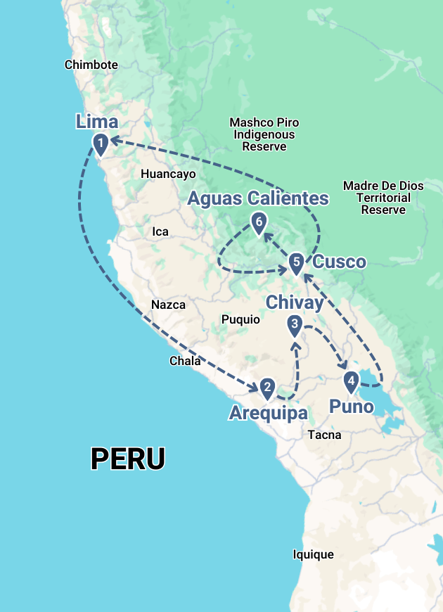 This sample itinerary was created by experts and is meant to inspire your next trip. It is ready to be customized to suit your interests, tastes and budget so you can connect with local cultures and experience authentic travel on your own terms and departing whenever you choose.
